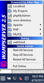 重新启动Apache Web服务器。在系统托盘上单击WampServer图标。在弹出菜单中选择Restart All Services查看托盘图标将再次变为绿色。
